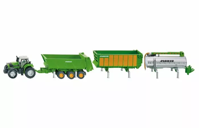 Een speelset van de bijzondere aard is de nieuwe Agroton X720 van Deutz in combinatie met 3 aanhangwagens uit het Joskin-Cargo-programma. Het wisselsysteem bestaat uit een silagewagen-, een giervat- en een universele strooieropbouw. Deze opbouwen kunnen voor de arbeidsinzet op een 3-as.chassis worden gemonteerd. Zijn zij niet in inzet kunnen zij op steunpoten gesteld zonder chassis worden geparkeerd. De opbouwen zijn, tot op het gietvat, verregaand uit metaal. Deutz tractor en 3-as-chassis rollen op banden uit gegommeerd materiaal.