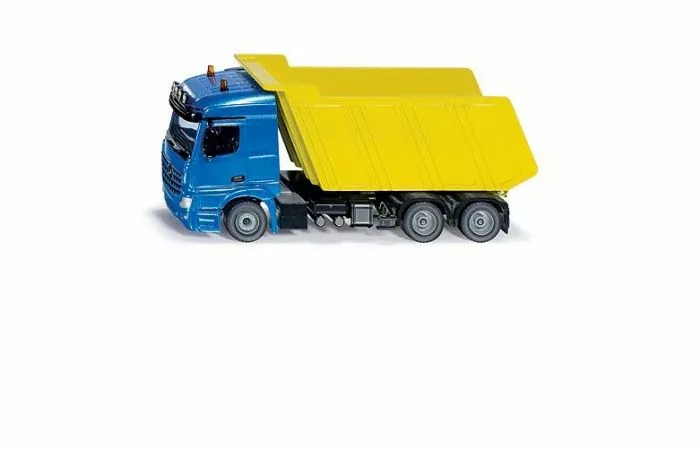 De nieuwe Mercedes-Benz Arocs vrachtwagen wordt gekenmerkt door de zware kantelbare bak en de chauffeurscabine is tevens kantelbaar en is voorzien van zwaailampen.