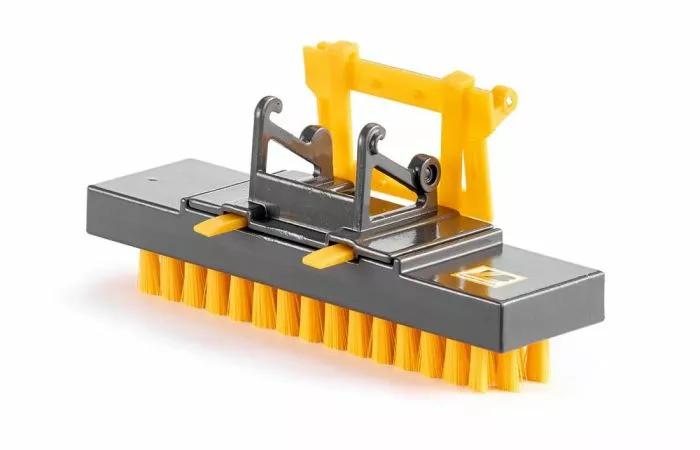 De serie aanbouwmachines voor SIKUFARMER32 tractoren met frontloader wordt met deze bijzondere set verder uitgebreid. De set bestaat uit een werkplatform, een sneeuwschild, een veger en een boomstamgrijper. Het werkplatform is bovendien voorzien van een deur. Het sneeuwschild kan naar links en rechts worden bewogen en de boomstamgrijper is voorzien van een pendelend opgehangen grijper. Een bijzonderheid van de veger is de meegeleverde palletvork. Hieraan kan de veger worden bevestigd. De armen van de nieuwe palletvorken voor de frontloader Fendt 939 Vario (#6778) uit de SIKUCONTROL serie passen ook op de bevestiging van de veger.