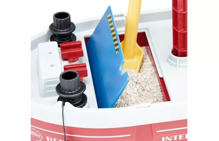 In de haven wordt het drijvende containerschip met de twee mechanische ankerlieren verankerd. Net als het grote voorbeeld kunnen de beide bunkers in de romp van het schip worden geladen met stortgoed (granulaat of zand) of de twee containers. Op het dek van het containerschip kunnen echter ook auto’s of vrachtwagens worden vervoerd. Deze kunnen daarvoor via de achtersteven in de beide bunkers rijden. De containers kunnen met de draaibare kraan, de bewegende loopkat en een speciale grijper heen en weer worden bewogen. Vanzelfsprekend passen deze op de SIKU opleggers op schaal 1:50 die aan de kade staan te wachten. De meegeleverde schop kan bij het uitladen worden gebruikt.