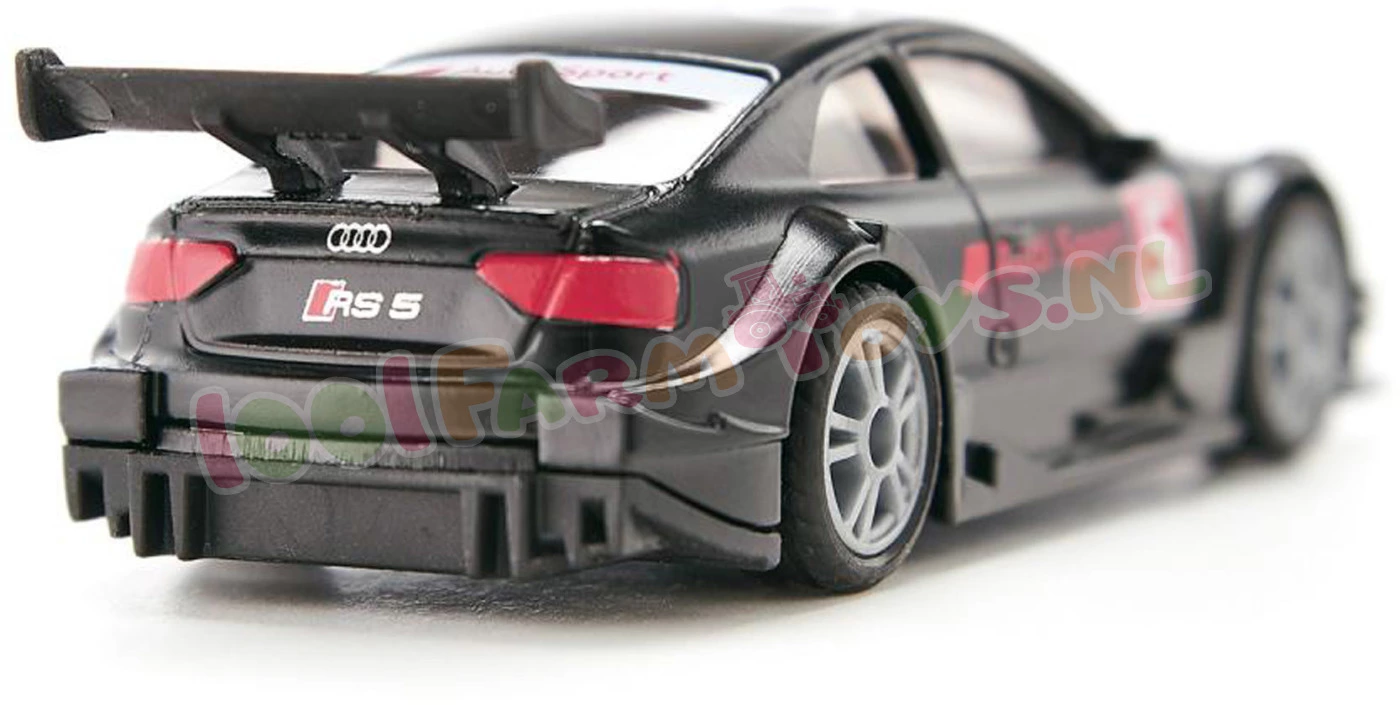 Met vier ringen naar de overwinningAudi heeft met de Audi RS 5 Racing in de Duitse toerwagen kampioenschappen (DTM) gewonnen in de categorieën coureur en merk. De auto met de vier ringen heeft de ene na de andere overwinning behaald. Onder de koolstof monocoque en stalen kooi zit zuivere racetechniek: een 8-cilinder turbomotor met een vermogen van meer dan 460 PK. Bij siku verschijnt de seriewinnaar in matzwart. met een grote achterspoiler en met gedetailleerde decoratie aan de start