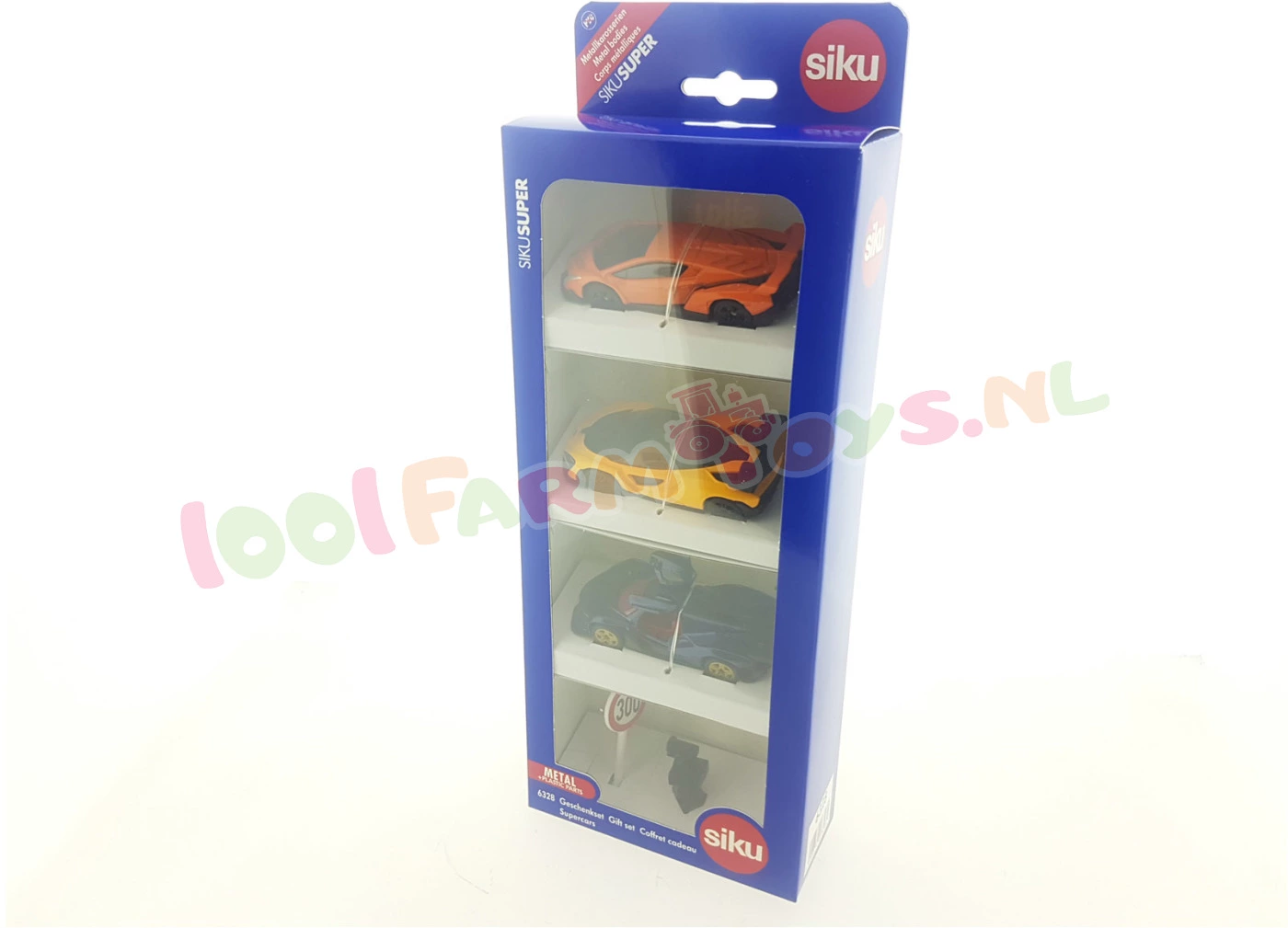 Deze drie supersportwagens laten ieder voor zich al het hart van elke autofan sneller kloppen! Siku combineert de drie PK-opscheppers nu in een bijzondere cadeauset. De Lamborghini Veneno. de Apollo I.E. en de McLaren Senna hebben alle drie een vermogen van ca. 800 PK en sprinten binnen 3 seconden van 0 naar 100 km/u. Maar niet alleen de prestaties zijn adembenemend. Ook het design zet de norm bij de sportwagens. Markante lijnen. grote spoilers. brede dorpels en vleugeldeuren zorgen voor een echt racegevoel. Net als het origineel zijn ze alle drie voorzien van de typische spoiler. bij Apollo I.E. kunnen de vleugeldeuren zelfs worden geopend. Sportvelgen met rubberen banden zijn bij deze siku serie vanzelfsprekend. Alle drie de wagens behoren op dit moment tot de snelste. sterkste. duurste en meest zeldzame voertuigen ter wereld. Voor de kleine Sheriffs in de dop bevat deze set bovendien een waarschuwingsbord “300” en een flitser want één ding is duidelijk: bij zoveel PK is zelfs de grens van 300 km/u snel bereikt!