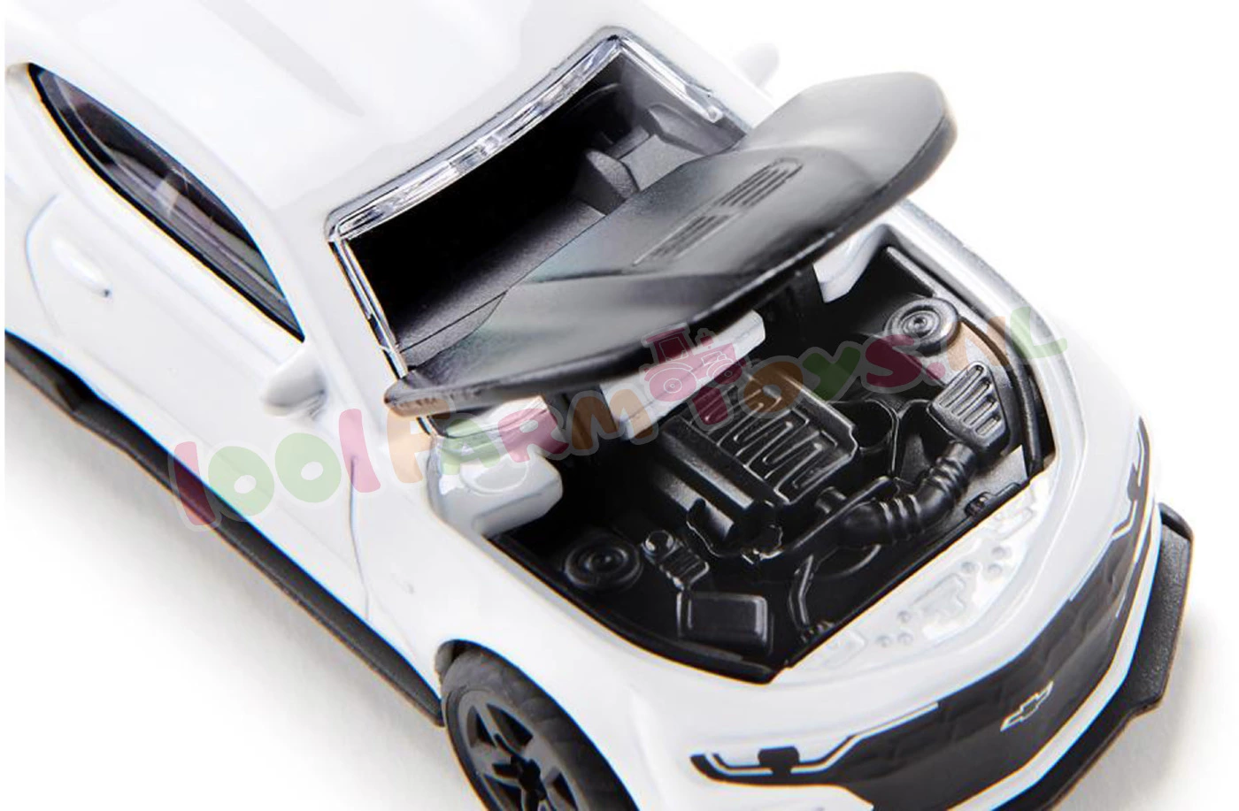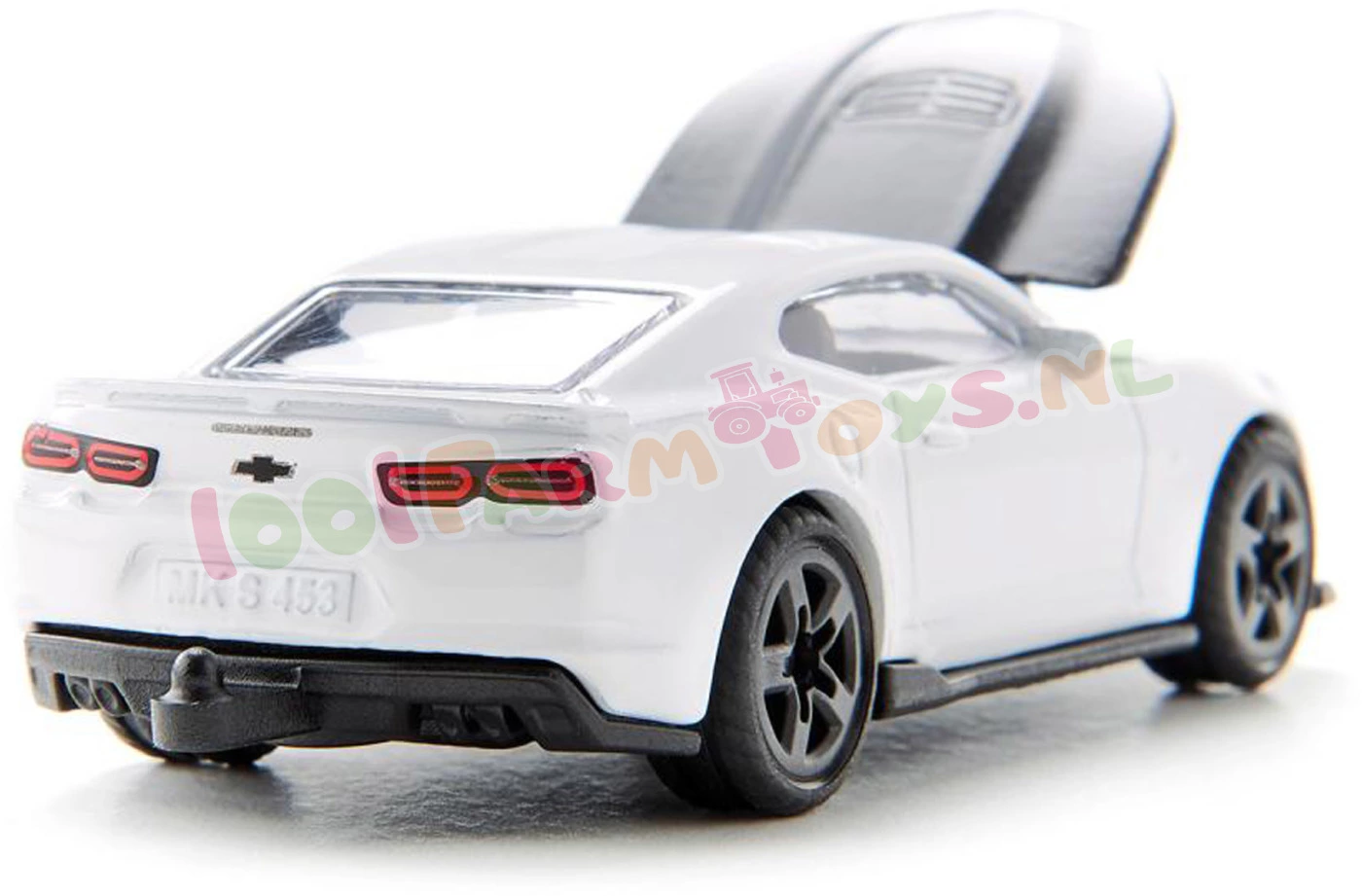 Muscle-Car met V8-Power – Ook de zesde generatie van de Chevrolet Camaro draagt het imago van een typische Muscle-Car. Vooral wanneer de chauffeur de spierballen van de V8-motor laat horen. Dat kan natuurlijk ook wanneer de wagen stilstaat: kap open en de blik valt meteen op de gedetailleerd uitgevoerde motor. Daarmee krijgt de Camaro een plek tussen de andere siku Muscle-Cars: Dodge Challenger. Chevrolet Corvette. Ford Mustang. Vanzelfsprekend is de nieuwste generatie nog sneller en wendbaarder dan de voorgangers en zorgen de rubberen banden voor een nog betere grip. De Chevrolet Camaro kan echter ook anders: door de trekhaak wordt hij een coole trekker voor een boottrailer of een aanhanger voor de motor.