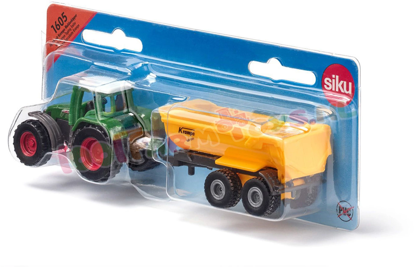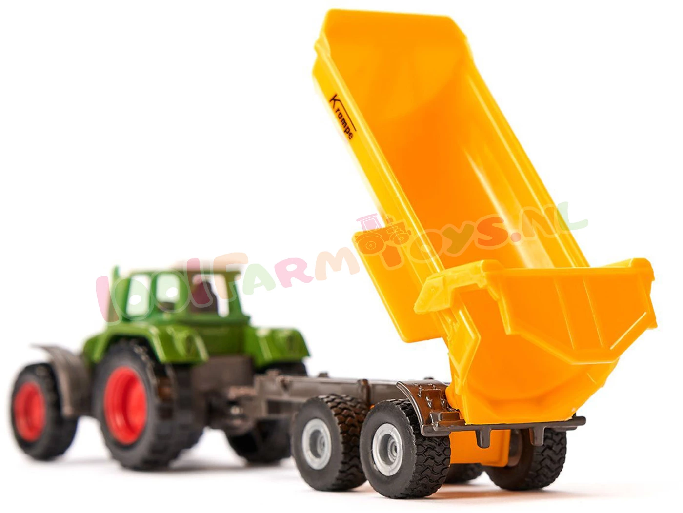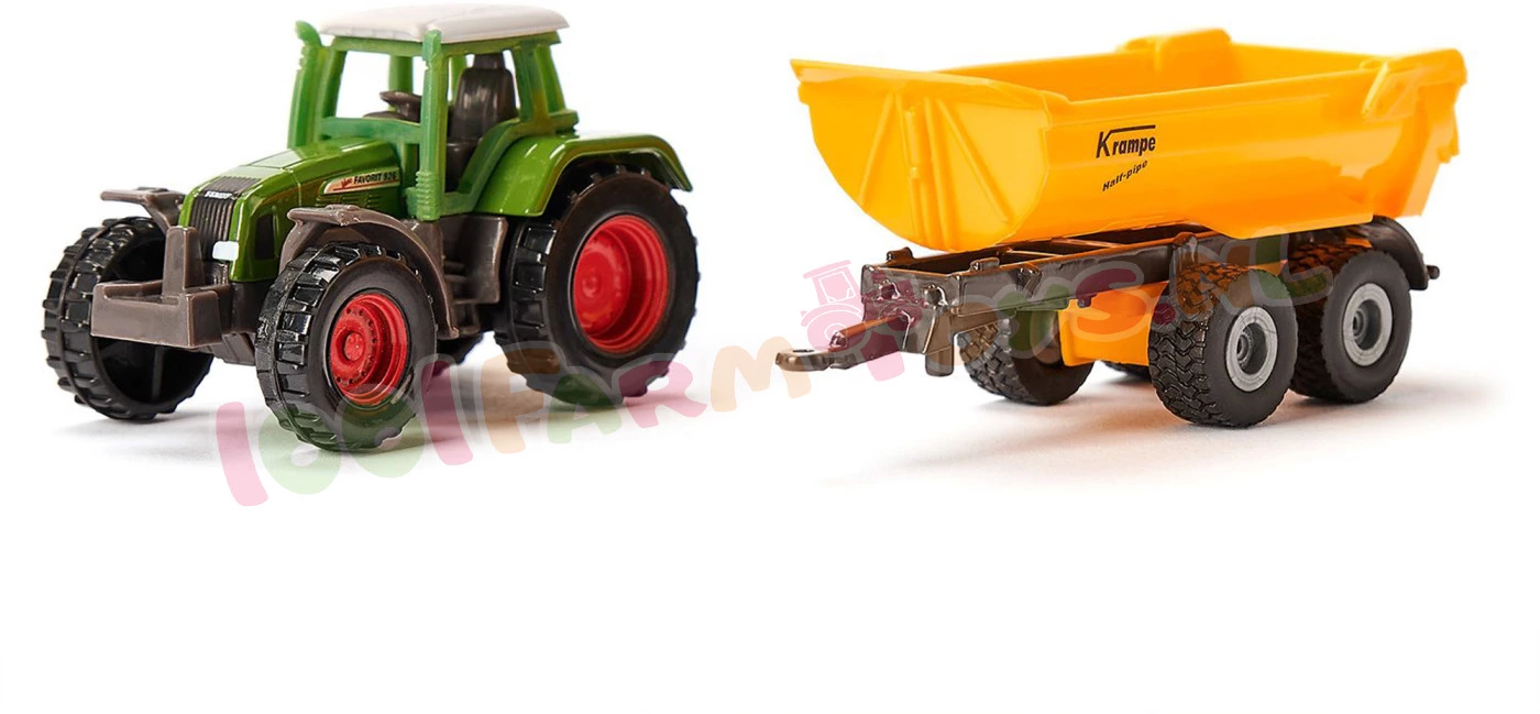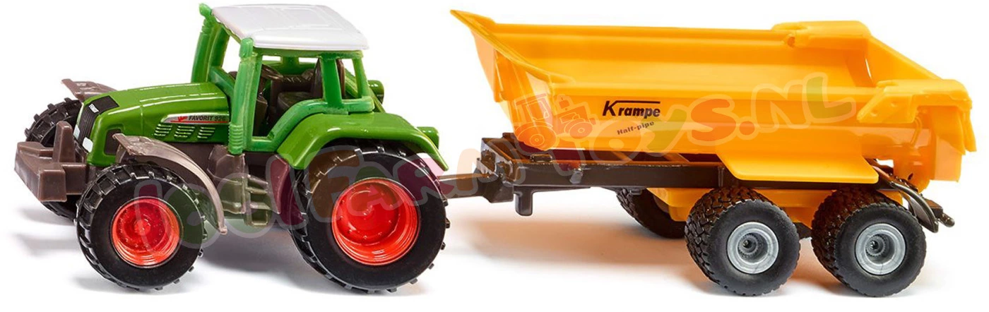 Power-Duo met een tractor en een Krampe kiepwagen260 PK aan gebalde paardenkrachten maken van de 926 Vario een superster onder de tractoren. Als Power-duo in combinatie met de Krampe kiepwagen is de tractor met de beroemde vierkante kap alle taken op het land en op de velden eenvoudig de baas en hij mag dus ook in de speelboerderij niet ontbreken. De tractor en de aanhanger zijn als siku-model uitgevoerd in metaal en kunststof en zijn tot op het kleinste detail nagemaakt. Dankzij de licht lopende wielen kan de Vario 926 ook met een zware lading moeiteloos rijden. De aanhanger met tandemchassis is in no-time aan de trekhaak van de Vario gekoppeld – we kunnen meteen aan de gang. De afneembare cabine en de kantelbare laadbak met beweegbare klep zorgen voor nog meer speelplezier.