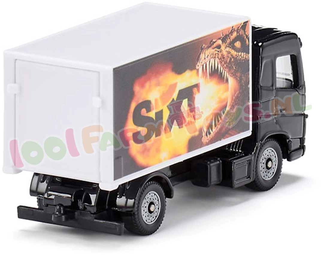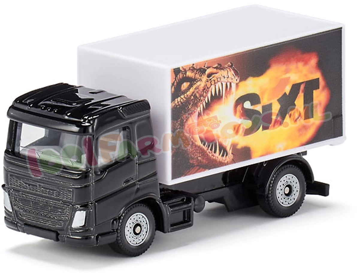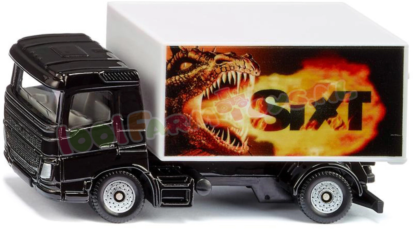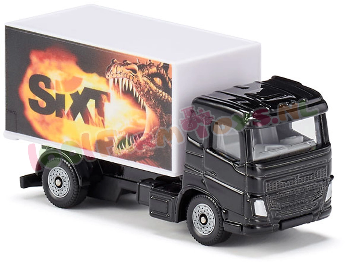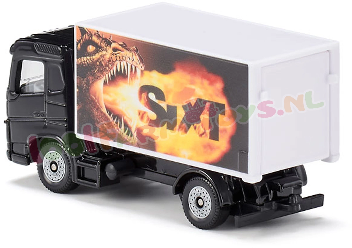 Staat er een verhuizing voor de deur? Of is de auto te klein voor het vervoer van zeer onhandzame voorwerpen? Geen probleem – alles past in de grote huurvrachtwagen met gesloten opbouw van Sixt! De zwart gelake metalen chauffeurscabine is gemonteerd op een twee-assig kunststof chassis met licht lopende wielen. Voor het laden en lossen van de vrachtwagen kan de achterklep van de gesloten opbouw worden geopend. Een echte blikvanger is de enorme drakenkop op de zijkanten die het Sixt logo met oranje-gele vlammen omarmt.