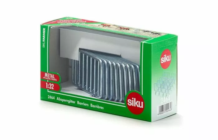 Accessoire dat bestaat uit 10 metalen dranghekken. Kunnen afzonderlijk worden gebruikt of samen met verschillende SIKU-modellen uit de Farmer32-serie.